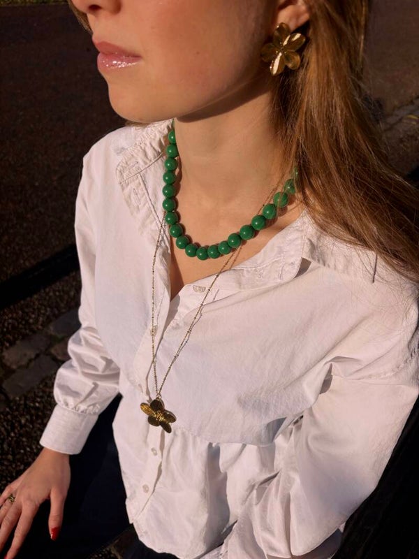 Je glimlacht, je zegt iets slims, je laat iets doorschemeren. Sweet Talk Gold doet mee – goud, bloemvormig, en net charmant genoeg om op te vallen zonder te overdrijven.