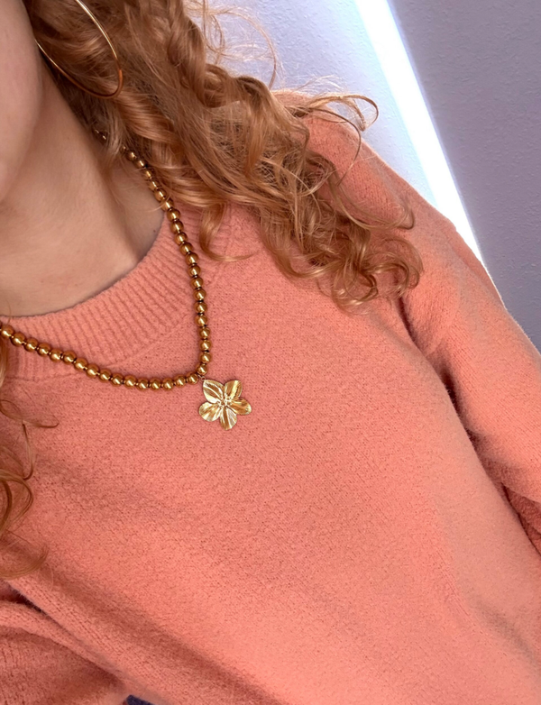 ✩ Goudkleurige RVS ketting met bloemvormige hanger