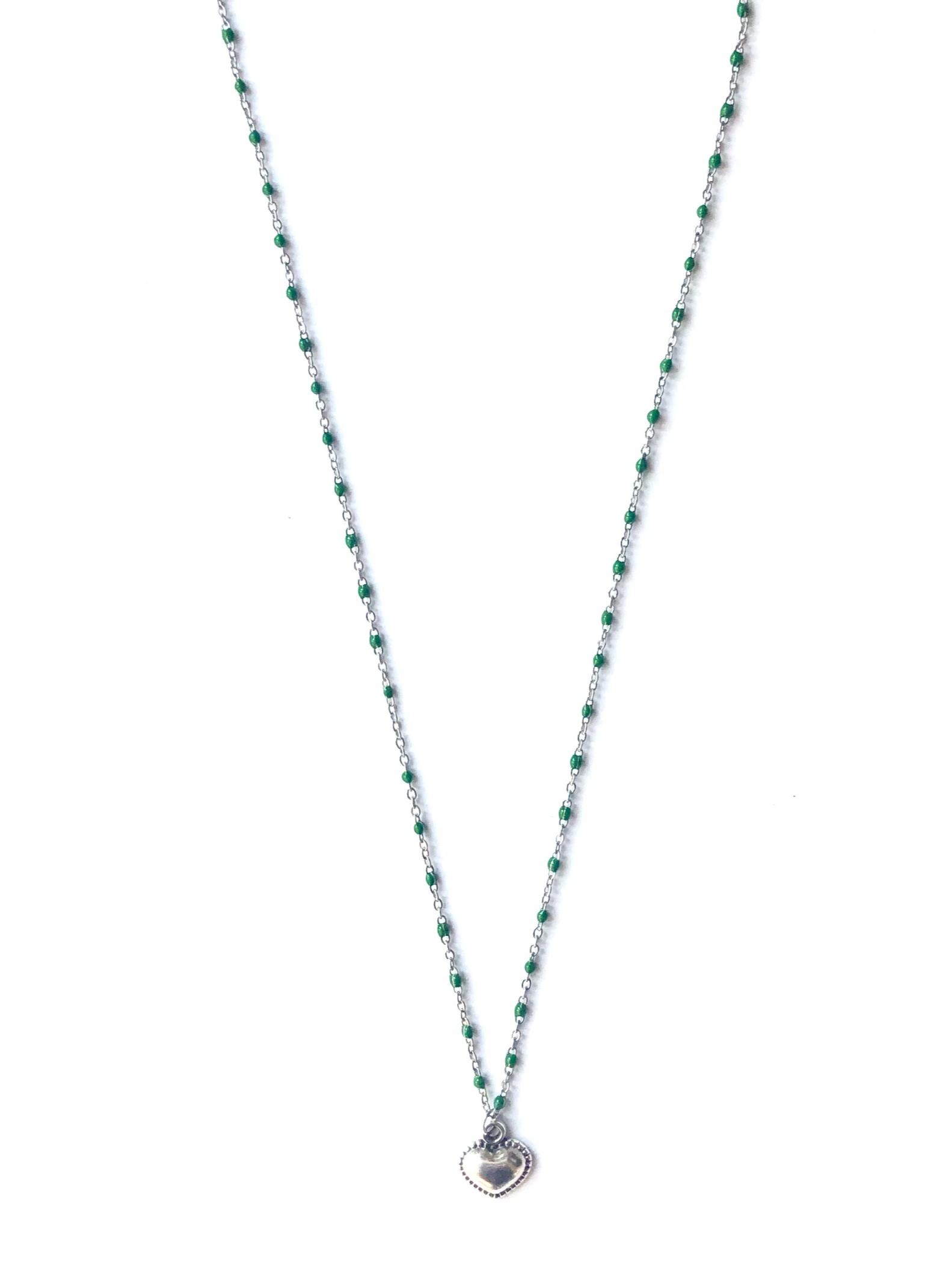✩ Zilver kettinkje met groene dots en hartjes bedeltje
