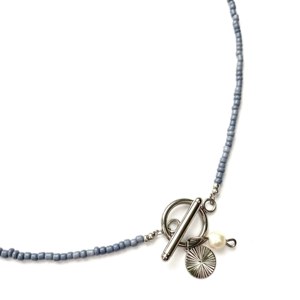 ✩ Denim kleur 2 mm kraaltjes met parel bedeltje en muntje