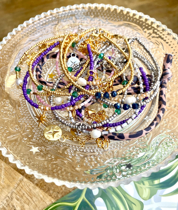 Hoe schattig is dit zilveren armbandje met shiny groene steentjes tussendoor en 5 mini sterretjes?! Super leuk om te combineren met andere minimalistische armbandjes.